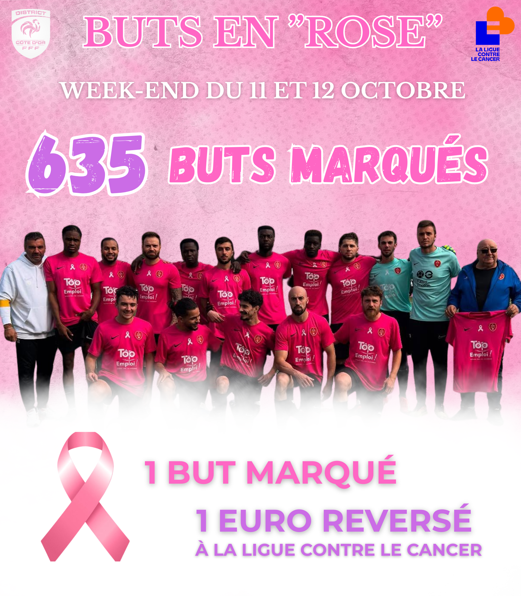 Ce week-end, le District de Football de Côte d'Or était sensibilisé dans le cadre du mois 'Octobre Rose". Ce samedi et ce dimanche, chaque but marqué dans les championnats...
