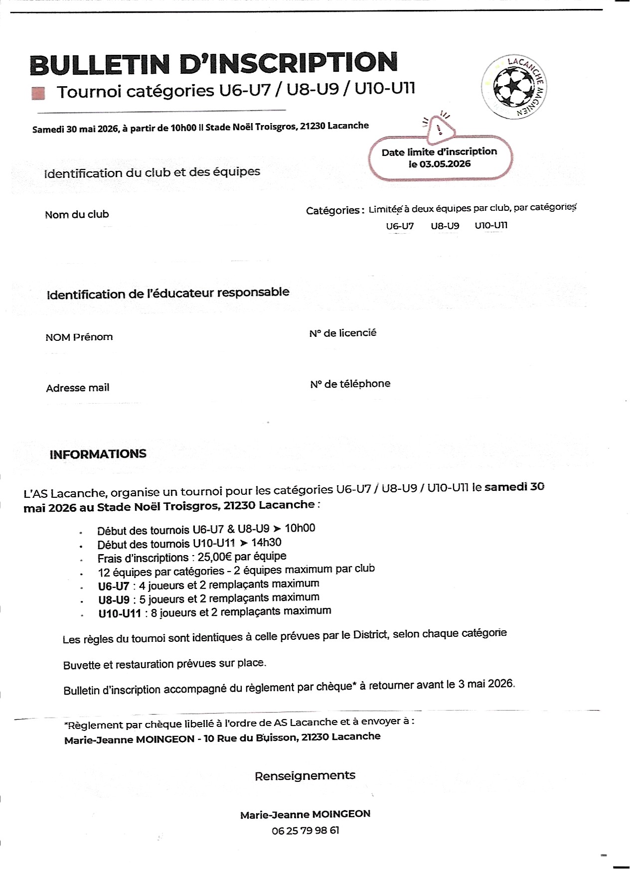 Fiche d’Inscription SOMBERNON GISSEY