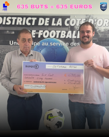 Grâce à l’engagement de tous, joueuses, joueurs, clubs et encadrants, ce sont 635 buts qui ont été marqués… et donc 635 euros que le District est fier de remettre à la Ligue contre le cancer.